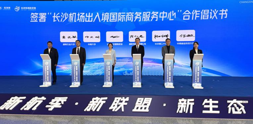 本次活动汇聚了航空、文旅、高校和语言服务企业,共同打造 “航空+文旅”生态合作新模式的启动。活动现场,长沙机场牵头联合南方航空、省旅行社协会、省旅游景区协会、省博物馆、中南大学、同程旅行等50余家单位及企业,签署了《长沙“航文旅”合作共建倡议书》与《长沙机场出入境国际商务服务中心合作倡议书》,长沙“航文旅”生态合作平台正式搭建完成,这将推动航空运输、文化传承、旅游消费三大板块的深度融合。
