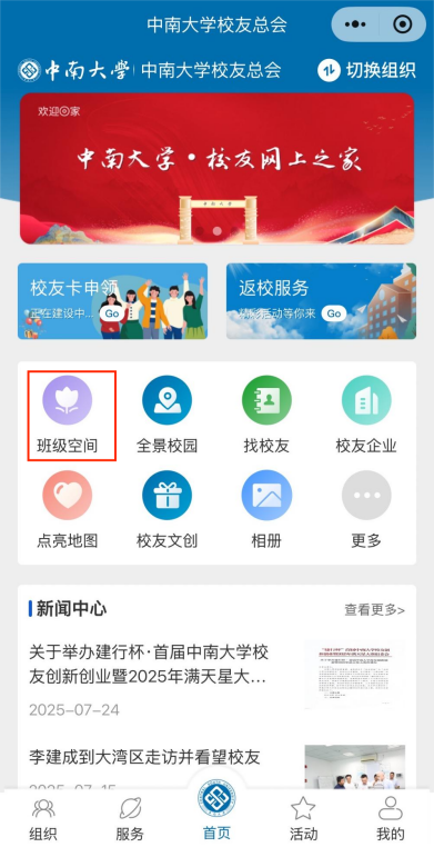 为确保各位校友及时获取母院动态与分会活动资讯请各位校友在“中南大学校友总会”小程序中及时完成校友信息认证,加入校友数据库。