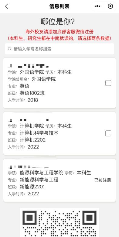 (1)扫描下方二维码或微信搜索“中南大学校友总会”小程序;